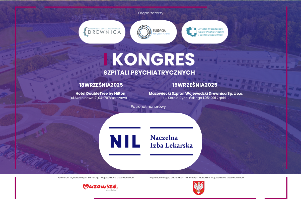 Naczelna Izba Lekarska objęła I Kongres Szpitali Psychiatrycznych patronatem honorowym. To kolejna instytucja, która doceniła wagę wrześniowego wydarzenia. Spotkanie ma na celu integrację środowiska szpitali psychiatrycznych. Chociaż poświęcone będzie...